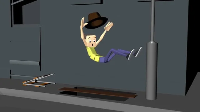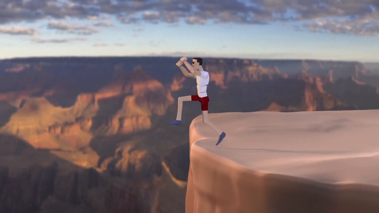Exhibited: A man running and jumping from one cliff to another. I have done the animation and lighting in Maya. Then edited this in After Effects and put in the background photo that I took.